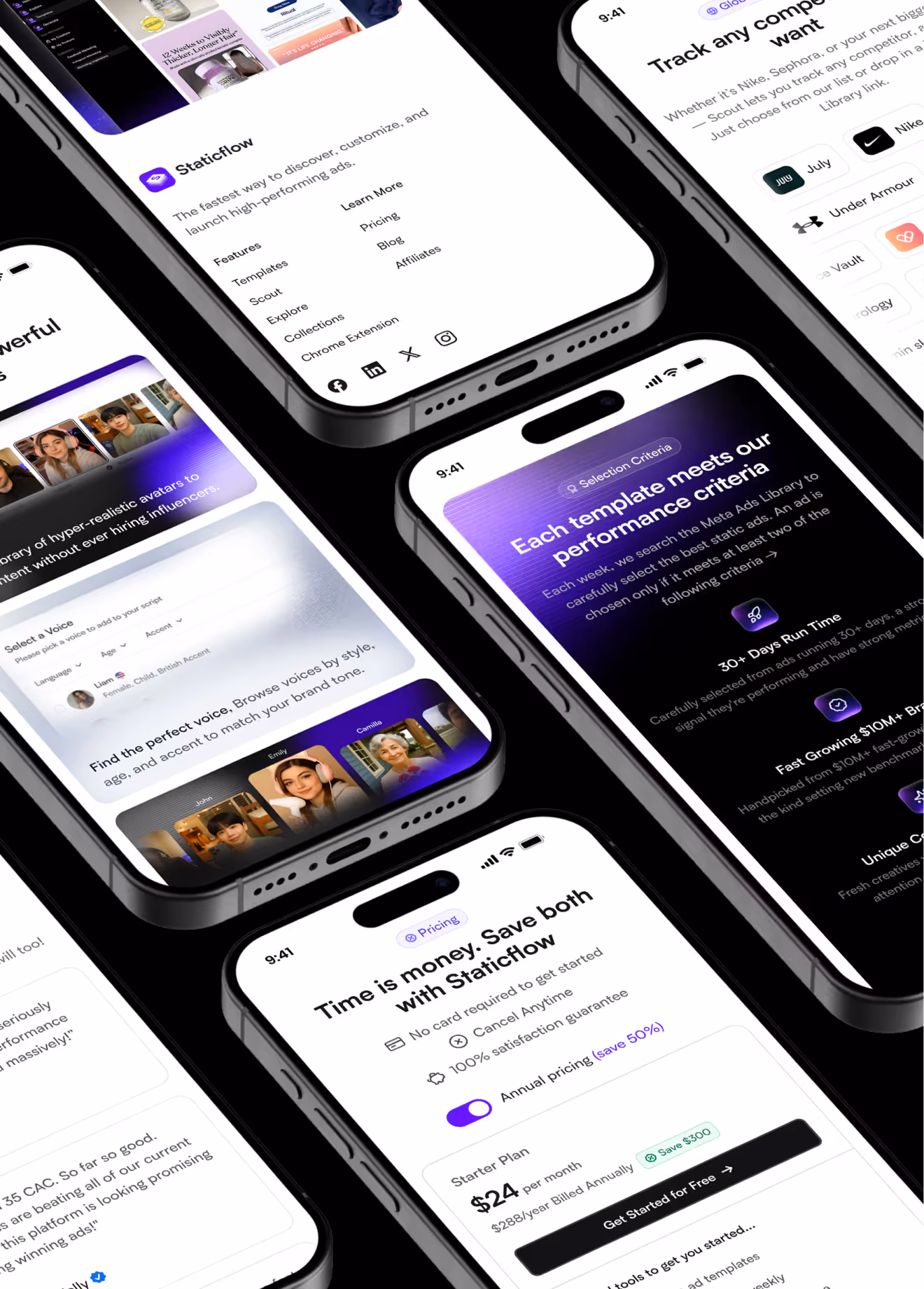The new site gave Staticflow a visual identity strong enough to carry its ambition – clear positioning, a confident design language, and a structured content flow that made the product's value obvious within the first scroll. The Webflow build brought the design to life with motion and precision, delivering a fast, polished experience that reflected what the platform was actually capable of.