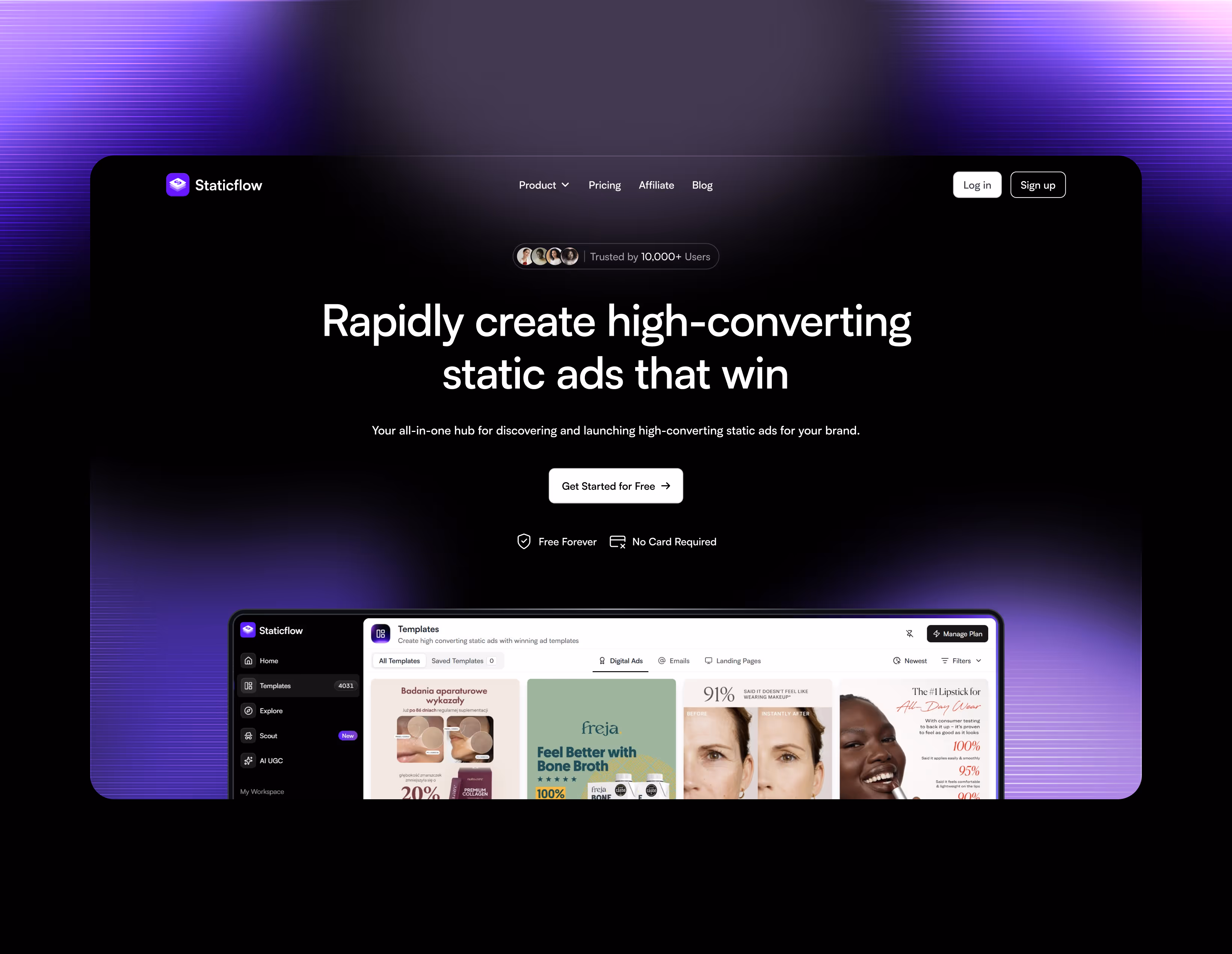 There was no clear visual language to differentiate Staticflow from generic SaaS dashboards – nothing that communicated the creative and strategic nature of the tool.